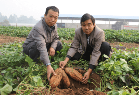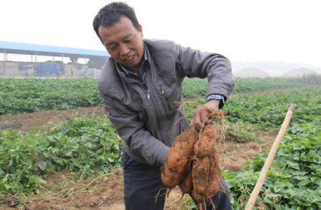 邢臺(tái)縣農(nóng)樂薯業(yè)專業(yè)合作社、無公害薯業(yè)開發(fā)協(xié)會(huì)張永崗會(huì)長(zhǎng)考察禾下土脫毒紅薯種苗基地