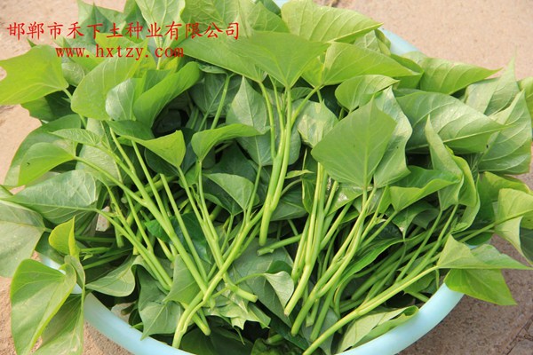 3、田間管理。甘薯病蟲害少,管理相對簡單。插種前結合整地,用"蓋草能"除草劑除去雜草,并施好"護地凈"防除地下害蟲。薯苗藤封壟前結合施肥除草松土兩次。以后每株苗采摘1~2次后施一次肥,以增加產量。追肥更好用農家肥稀釋澆施基部;或用復合肥埋施基部附近,每次用量為15~20㎏/667㎡;也可以施蔬菜專用葉面肥。干旱天須結合施肥澆水。