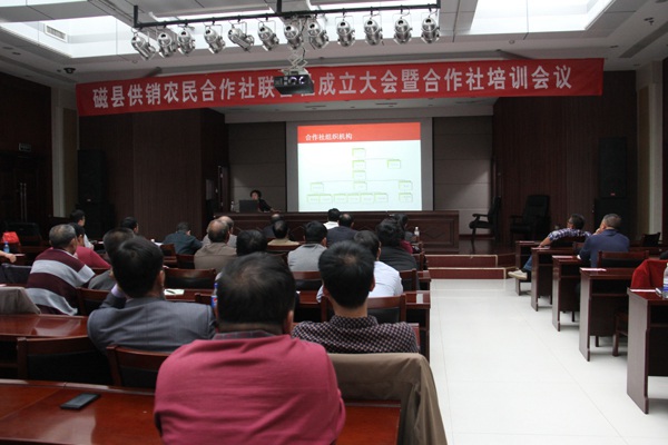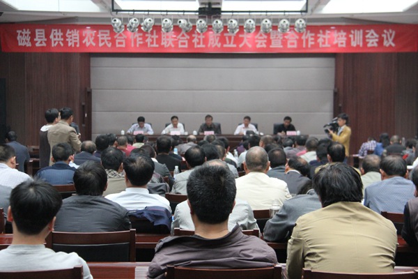 2015年10月13日,磁縣供銷農(nóng)民專業(yè)合作社聯(lián)合社召開成立大會(huì),并集中現(xiàn)場(chǎng)觀摩禾下土脫毒甘薯產(chǎn)業(yè)基地。邯鄲市供銷合作社李炳建副主任、市社基層處許瑞龍?zhí)庨L(zhǎng)、磁縣政府王建華副縣長(zhǎng),磁縣供銷社領(lǐng)導(dǎo)班子成員、禾下土種植專業(yè)合作社負(fù)責(zé)人、縣農(nóng)業(yè)技術(shù)專家、縣社機(jī)關(guān)中層干部,縣社各公司經(jīng)理、基層社主任和各鄉(xiāng)鎮(zhèn)農(nóng)民專業(yè)合作社聯(lián)合社及各成員社負(fù)責(zé)人等共計(jì)130余人參加會(huì)議。