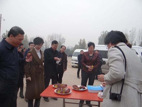 2016年11月17日,邯鄲市政府副市長(zhǎng)、九三學(xué)社河北省委副主委、市委主委、十屆省政協(xié)委員侯華梅到禾下土脫毒甘薯產(chǎn)業(yè)基地調(diào)研,邯鄲市科技局副局長(zhǎng)岳光亮、磁縣政府縣長(zhǎng)劉浩鋒、副縣長(zhǎng)萬曉芳、磁縣科技局局長(zhǎng)房三華等市縣領(lǐng)導(dǎo)陪同調(diào)研。