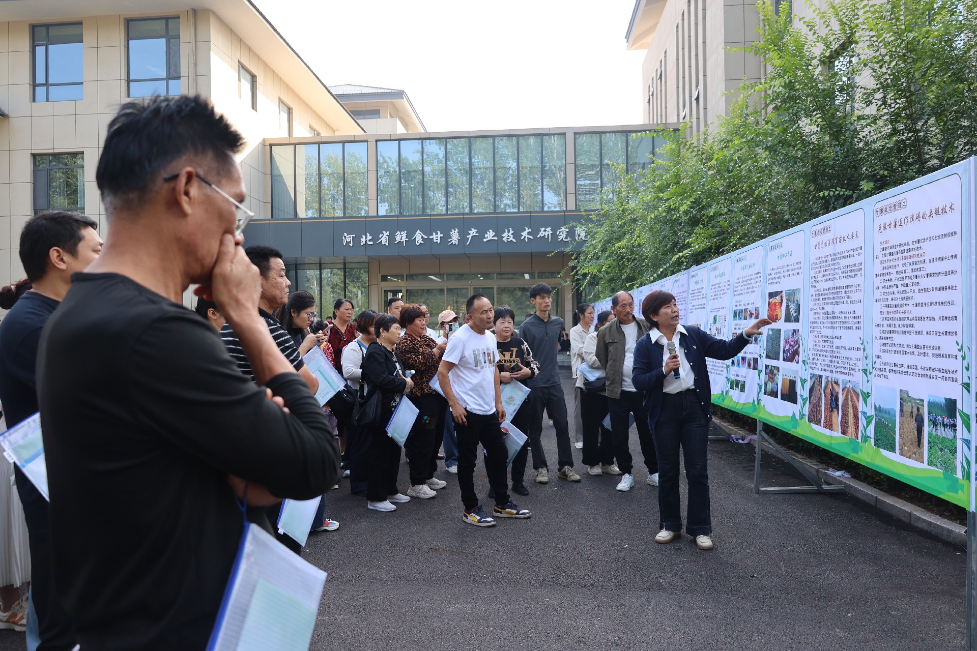 活動開篇環(huán)節(jié)聚焦科普實效,以直觀體驗開啟知識傳播。活動伊始,參會人員集體參觀甘薯產業(yè)技術科普展板,展板內容系統(tǒng)涵蓋甘薯的生物特性、產業(yè)特色、栽培儲藏管理技術及病蟲害防控方法等核心知識。現(xiàn)場專家圍繞展板內容進行細致講解,結合產業(yè)實際案例拆解技術要點,讓參會者在直觀觀察與專業(yè)解讀中,快速建立對甘薯產業(yè)關鍵技術的初步認知,為后續(xù)深入交流與技術推廣奠定堅實基礎。