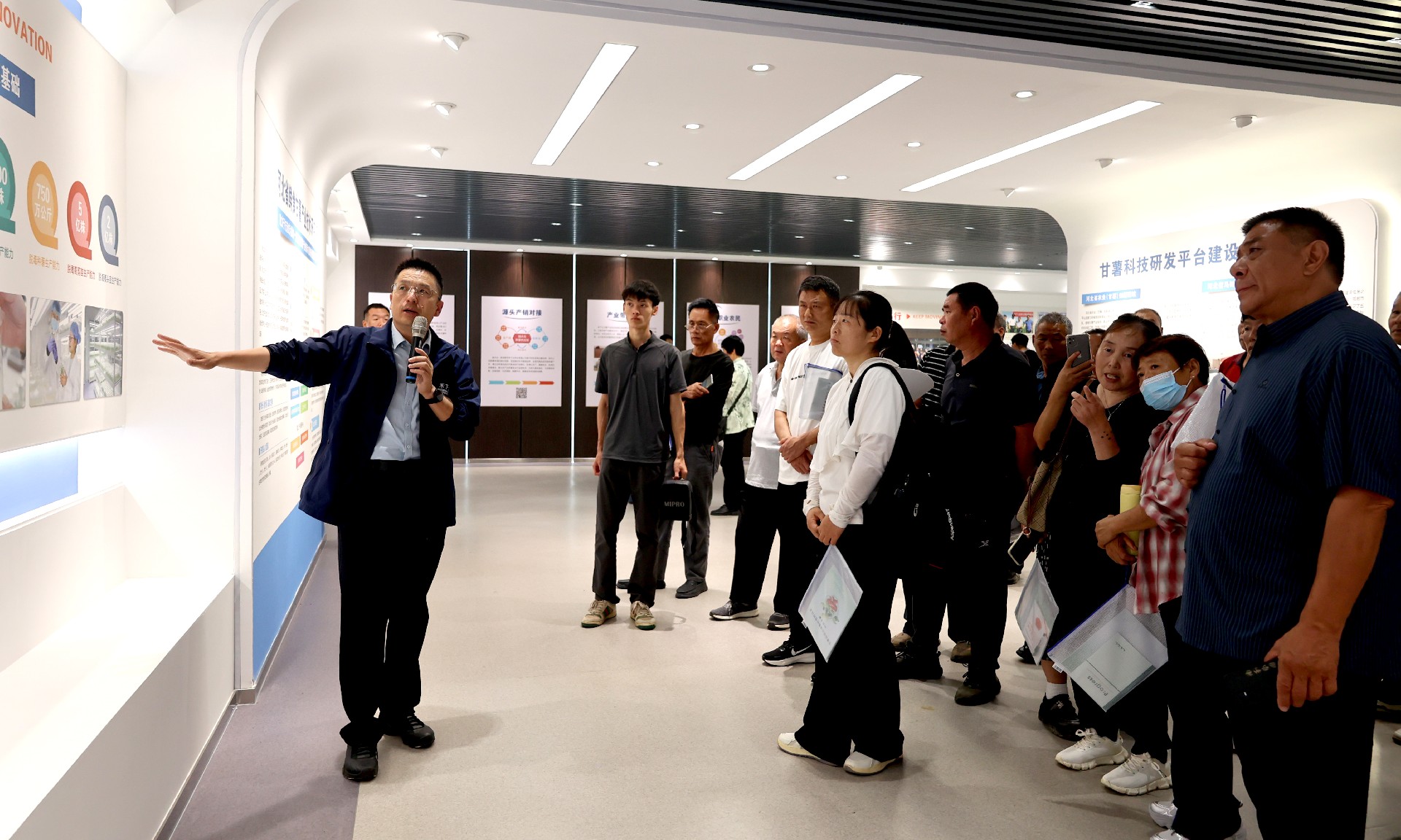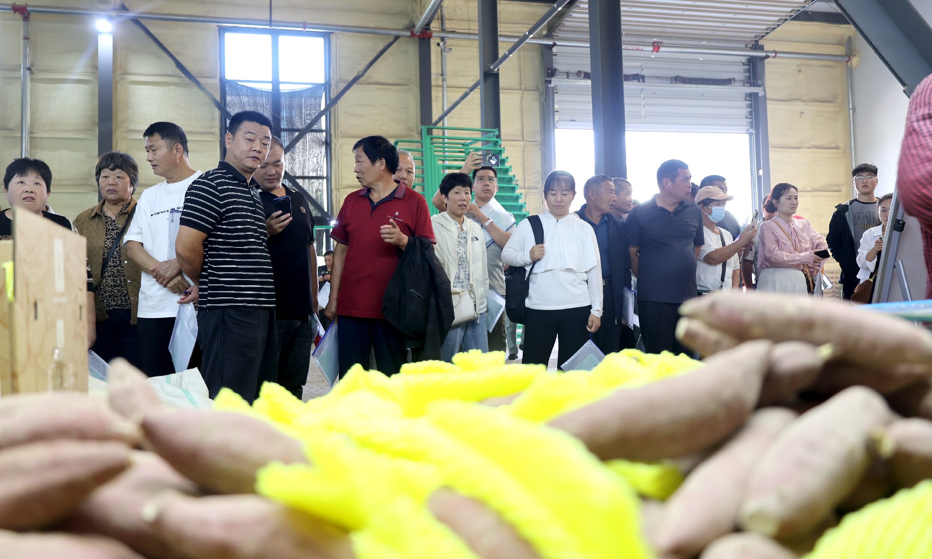 參觀公司展廳,進一步了解甘薯種業(yè)的發(fā)展現(xiàn)狀,禾下土現(xiàn)行的脫毒甘薯二級育苗體系,較國家標準的四級育苗標準足足提升兩級,大幅縮短育苗周期、降低培育成本。公司年產甘薯組培苗1.2億株、脫毒種薯1500余萬公斤、脫毒種苗10余億株,銷售覆蓋全國29個省區(qū)市。同時依托億甲寧一站式服務平臺,為農業(yè)企業(yè)、種地大戶、家庭農場等新型農業(yè)經營主體提供全方位指導,直接帶動9251戶農民增產增收。在智能化倉儲中心,眾人聚焦于現(xiàn)場的甘薯品質檢測與等級分揀環(huán)節(jié),從表皮完整性、形狀規(guī)整度等方面對甘薯進行分揀,既保證了每一批次甘薯的品質一致性,也為不同市場需求提供了精準的產品匹配。