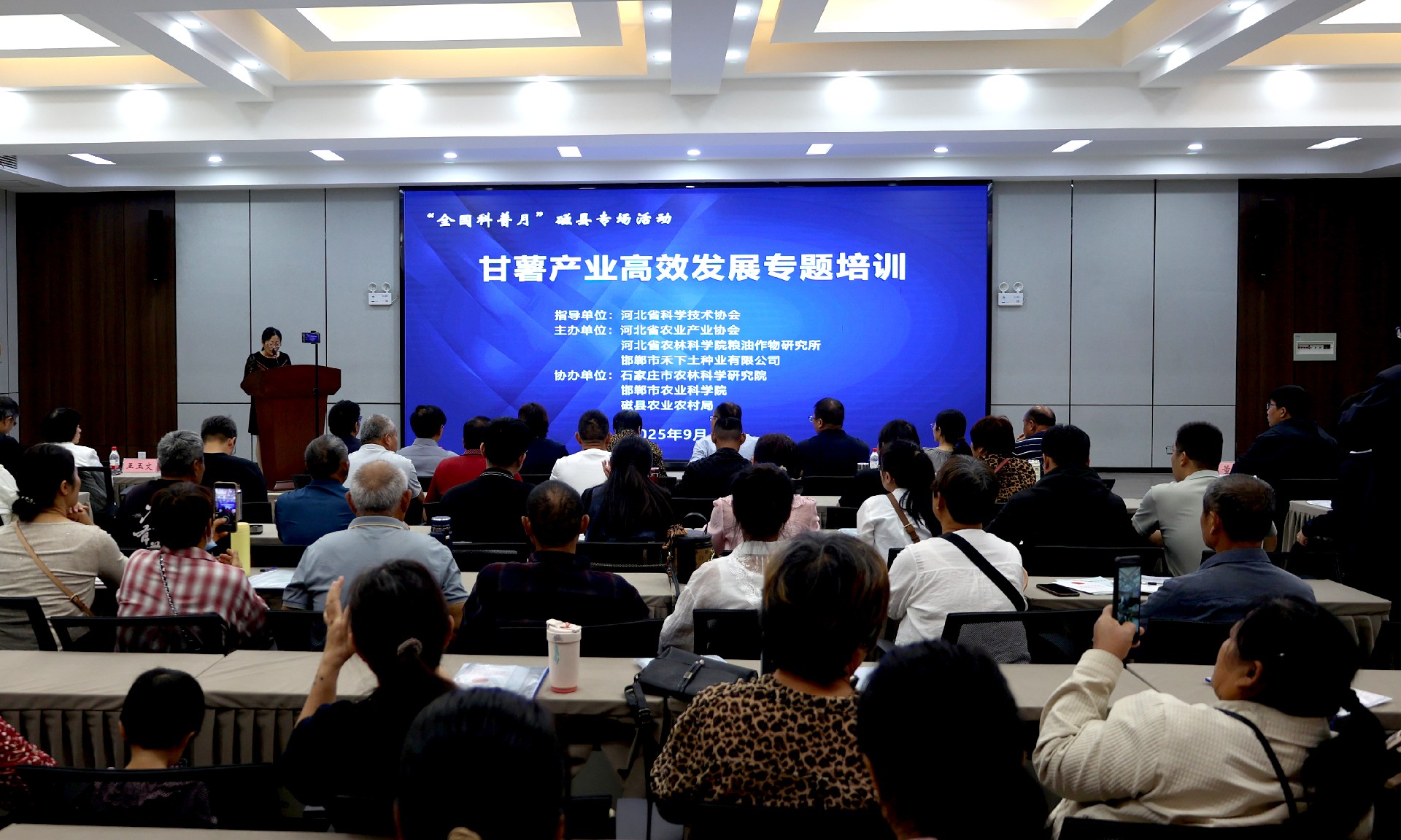 2025年9月29日,科普賦能甘薯產業(yè)高效發(fā)展暨“全國科普月”磁縣專場活動在邯鄲市禾下土種業(yè)有限公司隆重舉行。本次活動由河北省科學技術協(xié)會指導,河北省農業(yè)產業(yè)協(xié)會、河北省農林科學院糧油作物研究所、邯鄲市禾下土種業(yè)有限公司主辦,石家莊市農林科學研究院、邯鄲市農業(yè)科學院、磁縣農業(yè)農村局協(xié)辦。邀請河北省科學技術協(xié)會一級調研員田曉蘭、河北省農業(yè)產業(yè)協(xié)會常務副會長聶永生、河北省農業(yè)機械化研究所研究員高清海、河北省農林科學院糧油作物研究所甘薯研究室主任馬志民、河北省農林科學院植物保護研究所研究員馬娟、國家甘薯產業(yè)技術體系石家莊綜合試驗站站長劉蘭服,石家莊市農林科學研究院甘薯課題組研究員王海山、邯鄲市農業(yè)科學院甘薯研究室副研究員王騰蛟等河北省甘薯行業(yè)有關專家學者、新型經營主體代表及種植大戶,磁縣鄉(xiāng)鎮(zhèn)技術骨干及實用人才代表參加。