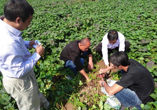 2018年10月3日,中國農業大學生物學院院長鞏志忠、生物學院教授齊俊生博士、北京中捷四方董事長崔艮中一行禾下土脫毒甘薯種薯、種苗基地進行調研,邯鄲市禾下土種業有限公司總經理崔伏喜等陪同調研。