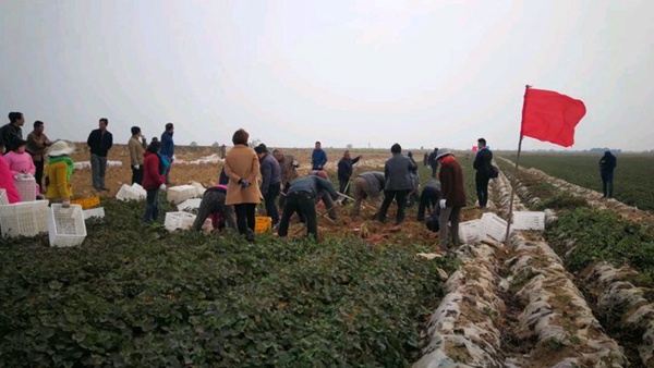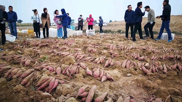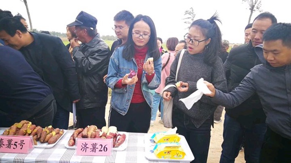 2018年10月18日,合陽縣農(nóng)業(yè)技術(shù)推廣中心組織農(nóng)業(yè)技術(shù)人員、紅薯種植農(nóng)戶、紅薯貯藏、銷售人員,參觀在當?shù)胤N植禾下土脫毒紅薯苗濟薯26、秦薯5號、龍薯601、紫羅蘭收獲現(xiàn)場,經(jīng)國家甘薯體系安排的專家測定,秦薯5號畝產(chǎn)8374斤,濟薯26畝產(chǎn)10640斤,在紅薯生長期間遭遇嚴重干旱情況下,有這么高產(chǎn)量,商品率這么高,種植基地秦總非常滿意,對未來紅薯種植產(chǎn)業(yè)發(fā)展充滿信心。