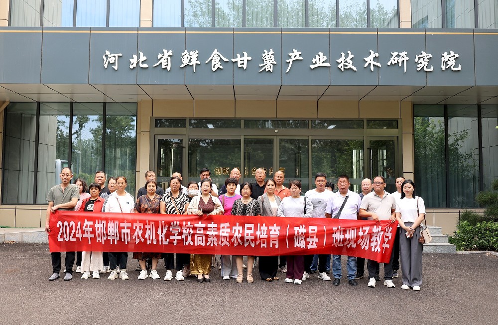 為拓展學(xué)員視野、拓寬種植經(jīng)營模式,2024年9月11日,邯鄲市農(nóng)業(yè)機(jī)械化學(xué)校組織“高素質(zhì)農(nóng)民(曲周)班”學(xué)員約50余人到禾下土參觀學(xué)習(xí)。邯鄲市禾下土種業(yè)有限公司副總經(jīng)理鄒義杰帶領(lǐng)學(xué)員參觀了綜合展廳、甘薯種苗繁育基地,品嘗了鮮食甘薯,深入了解禾下土在甘薯種業(yè)領(lǐng)域的創(chuàng)新發(fā)展情況及規(guī)模化基地建設(shè)情況,之后圍繞甘薯栽培技術(shù)要點展開現(xiàn)場培訓(xùn)。針對甘薯起壟、滴灌、種植、施肥、控旺、防蟲草害等技術(shù)要點,鄒義杰為學(xué)員提供了詳盡的講解,解答了他們在甘薯種植上的疑問。
