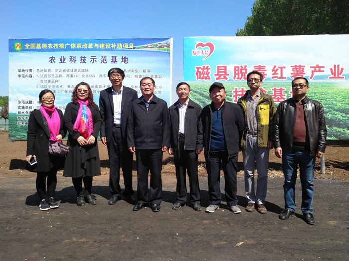 2019年5月11日,河北省農林科學院植物保護研究所副所長、國家甘薯體系蟲害防控崗位專家陳書龍、河北省農林科學院糧油作物研究所甘薯研究室主任、河北省薯類體系甘薯專用品種篩選與評價崗位專家、河北省甘薯產業技術創新戰略聯盟理事長馬志民、河北省農林科學院糧油作物研究所研究員、國家甘薯體系石家莊綜合試驗站站長劉蘭服、廊坊市農林科學院副院長,河北省薯類體系種薯繁育與栽培崗位專家杜德玉、河北省農林科學院植物保護研究所農用線蟲研究室主任王容燕到禾下土脫毒甘薯種苗基地進行聯合調研。專家團一行在脫毒甘薯種苗繁育基地現場查看脫毒種苗生長情況,對不同品種進行單株詳細檢查,對禾下土脫毒種苗質量給予高度認可,認為禾下土在加強團隊管理、質量管控、標準生產的同時,優越的區域土地資源優勢、自主規范化脫毒種薯生產...