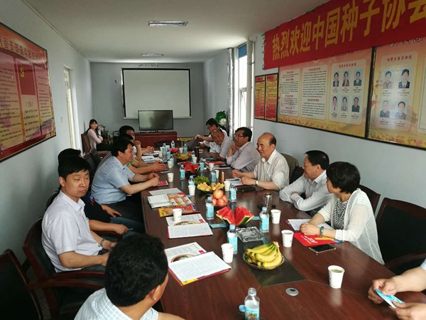2016年5月24日上午,中國種子協會秘書長李立秋到邯鄲調研種子企業經營狀況,河北省種子協會秘書長封五平、邯鄲市農業局局長李文杰陪同調研。邯鄲市種業協會全體會長、副會長參加會議。李立秋秘書長就新種子法內容進行了解讀,對種子企業未來人才引進、合作發展、加強科研投入、拓展視野、專業發展等提出寶貴建議,對禾下土脫毒甘薯種苗特色產業取得成績給予肯定并給予支持。