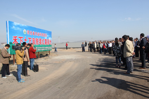 2015年10月31日上午磁縣農牧局新型職業農民培訓班學員到邯鄲市禾下土種業有限公司脫毒甘薯育種育苗基地參觀學習。現場采收脫毒紅薯脫毒紅薯采收稱重學員對在基地現場采收的脫毒紅薯單株產量8斤,畝產過萬斤的高產表示驚訝,沒想到紅薯脫毒后能有這么高的產量。禾下土公司董事長向培訓學員介紹了禾下土脫毒甘薯育種育苗基地概況、現有的脫毒甘薯品種、脫毒甘薯的6大優勢以及營銷網絡。董事長在會議室向學員培訓 磁縣農牧局新型職業農民培訓班學員在禾下土基地合影留念
