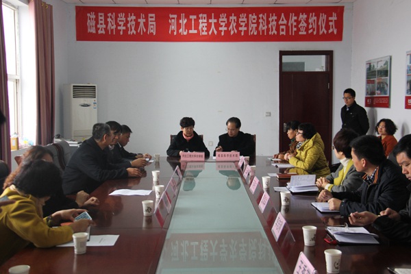 2014年11月26日磁縣科學技術局、河北工程大學農學院科技合作簽約儀式在邯鄲市禾下土種業有限公司舉行。磁縣政府副縣長萬曉芳、磁縣科學技術局局長房三華、副局長李志剛、河北工程大學農學院院長劉娜、副院長張彥萍、孫全德及部分重點涉農企業負責人等出席簽約儀式。 會議上萬曉芳副縣長、劉娜院長進行了重要發言,對開展院企深度合作給予高度重視與肯定,通過圍繞生態農業、現代農業、項目定位等方面開展全面科技合作,建立產業聯盟,實現政府、院校、企業資源分享,共同推動科技農業、現代農業的產業化發展。 禾下土公司總經理崔伏喜詳細介紹了禾下土脫毒甘薯產業基地的建設發展情況,得到與會專家、領導的一直認可。會議通過認定邯鄲市禾下土種業有限公司、磁縣增鑫種植業合作社、天道益農邯鄲農業科技有限公司、邯鄲市金益...