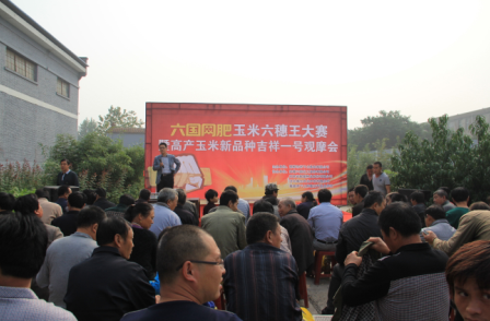 2014年9月20日,由邯鄲市禾下土種業(yè)有限公司主辦,安徽六國化工股份有限公司、甘肅省敦煌種業(yè)股份有限公司、河北緣生農(nóng)業(yè)開發(fā)有限公司、磁縣禾下土種植業(yè)專業(yè)合作社協(xié)辦的六國網(wǎng)肥——吉祥一號玉米六穗王大賽,在禾下土公司舉辦,來自禾下土公司的農(nóng)戶、種植大戶、經(jīng)銷商150余人,參與了該活動,評選出15位農(nóng)戶獲得金銀條獎項。敦煌種業(yè)李福興副總經(jīng)理、六國化工河北省銷區(qū)指揮長靳長富、禾下土公司崔伏喜經(jīng)理為獲獎農(nóng)戶頒獎并合影留念。