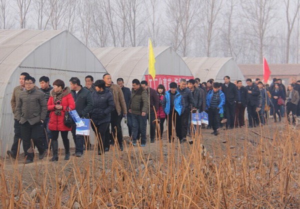 2015年1月8日上午,出席第二屆中原脫毒甘薯產(chǎn)業(yè)發(fā)展研討會(huì)的專(zhuān)家、教授及育種育苗、機(jī)械、加工、銷(xiāo)售、肥料、化控、種植等企業(yè)代表共130余人一起來(lái)到邯鄲市漳河生態(tài)科技園區(qū),參觀了禾下土脫毒甘薯組培中心、種苗基地、種薯基地和種薯窖藏設(shè)施,深入了解禾下土脫毒甘薯產(chǎn)業(yè)建設(shè)與發(fā)展情況。