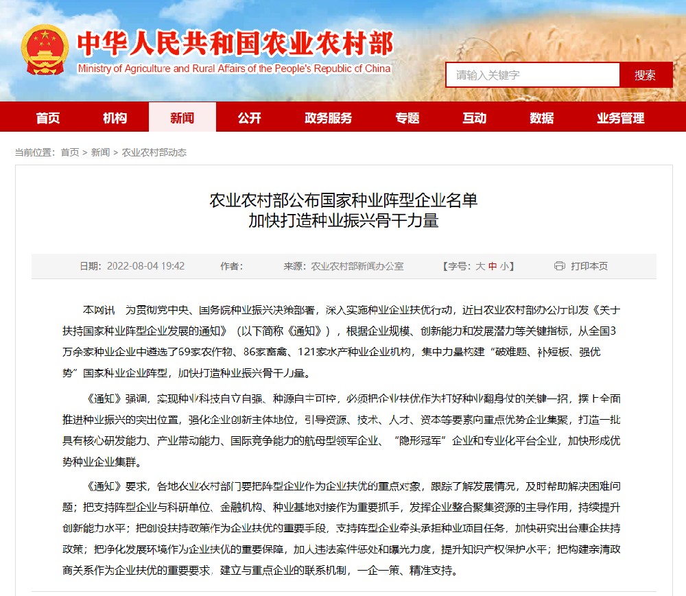 為貫徹黨中央、國務(wù)院種業(yè)振興決策部署,深入實(shí)施種業(yè)企業(yè)扶優(yōu)行動,近日農(nóng)業(yè)農(nóng)村部辦公廳印發(fā)《關(guān)于扶持國家種業(yè)陣型企業(yè)發(fā)展的通知》,根據(jù)企業(yè)規(guī)模、創(chuàng)新能力和發(fā)展?jié)摿Φ汝P(guān)鍵指標(biāo),從全國3萬余家種業(yè)企業(yè)中遴選了69家農(nóng)作物、86家畜禽、121家水產(chǎn)種業(yè)企業(yè)機(jī)構(gòu),集中力量構(gòu)建“破難題、補(bǔ)短板、強(qiáng)優(yōu)勢”國家種業(yè)企業(yè)陣型,加快打造種業(yè)振興骨干力量。邯鄲市禾下土種業(yè)有限公司憑借在甘薯種業(yè)領(lǐng)域的產(chǎn)業(yè)規(guī)模和創(chuàng)新發(fā)展優(yōu)勢,入選《國家農(nóng)作物種業(yè)陣型企業(yè)名單》。