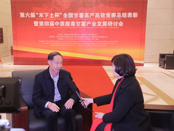 2017年1月8日至10日,國家甘薯現(xiàn)代農(nóng)業(yè)產(chǎn)業(yè)技術(shù)體系福建龍巖綜合試驗站站長、福建龍巖市農(nóng)業(yè)科學研究所首席專家、農(nóng)科所室主任、高級農(nóng)藝師,龍薯9號育種人楊立明出席第六屆"禾下土"杯全國甘薯高產(chǎn)高效競賽總結(jié)表彰第四屆中原脫毒甘薯產(chǎn)業(yè)發(fā)展研討會,并接受了媒體的專題訪問,對于龍薯9號品種優(yōu)勢及生產(chǎn)過程遇到的問題進行了現(xiàn)場解答。在談到龍薯9號薯塊變圓和裂薯情況出現(xiàn)的原因時,楊立明表示:"薯塊變圓跟土壤有很大的關(guān)系,土壤深厚,薯塊長的長,如果土層比較薄的,薯塊變的比較圓,實際上土壤和生產(chǎn)條件有很大的關(guān)系。裂薯的原因多種因素造成的,比如感染了病毒,會出現(xiàn)裂薯,再一個就是對水肥的要求較高,因為膨大快,水肥沒趕上,容易造成裂薯。第三個原因就是長期干旱,突然間下雨或者灌溉會出現(xiàn)裂薯"...